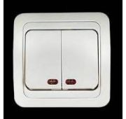 Выкл. 2 кл.«Дельта» бел/зол. с подсв. 1458